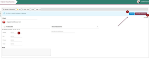 • Indication d’une Note : Vous avez la possibilité d’ajouter une note pour préciser la « raison de l’absence ». Cette note permettra de justifier ou d’expliquer l’absence directement dans le logiciel, facilitant ainsi la gestion et le suivi des absences.